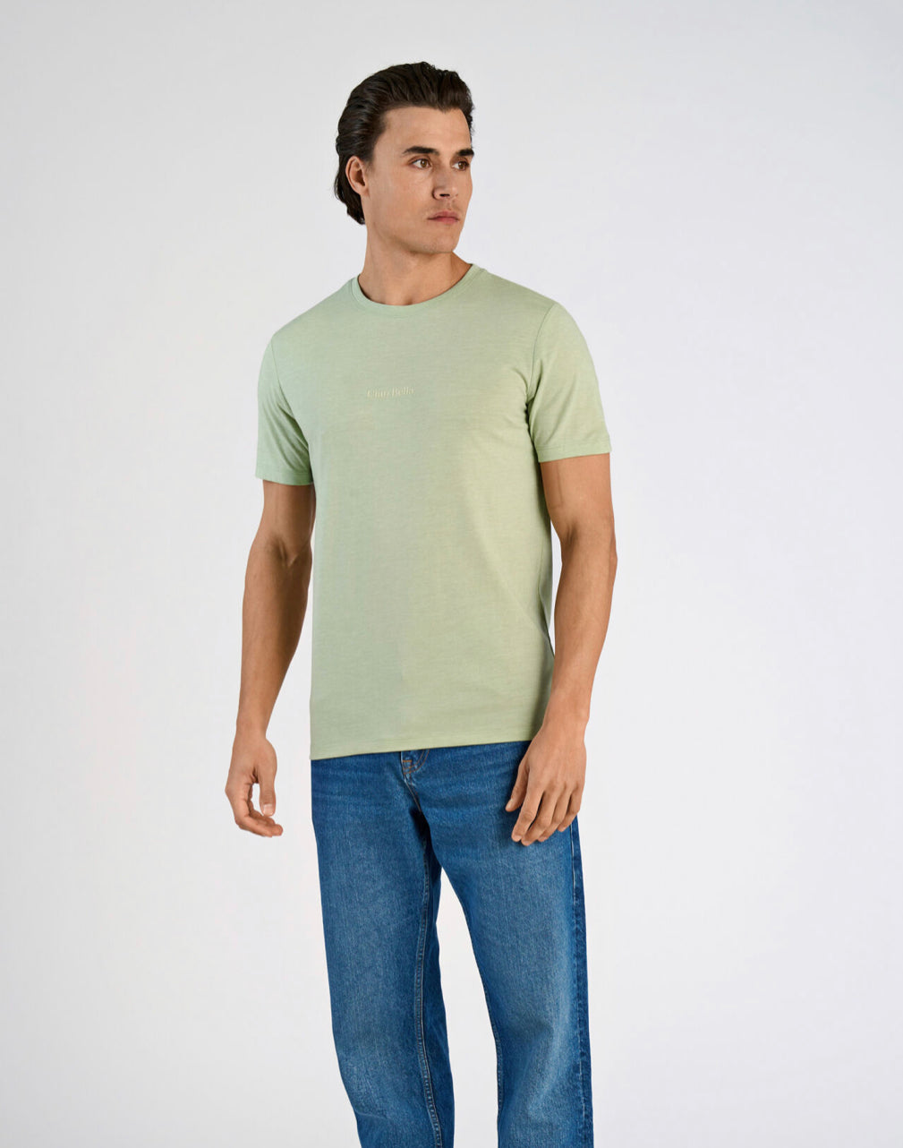T-shirt med rund hals och applikation över bröstet. T-shirten är gjord i en bomullsblandning och har en logotypetikett nere till vänster. Tillverkad i avslappnad passform, som är åtsittande utan att vara för tight.