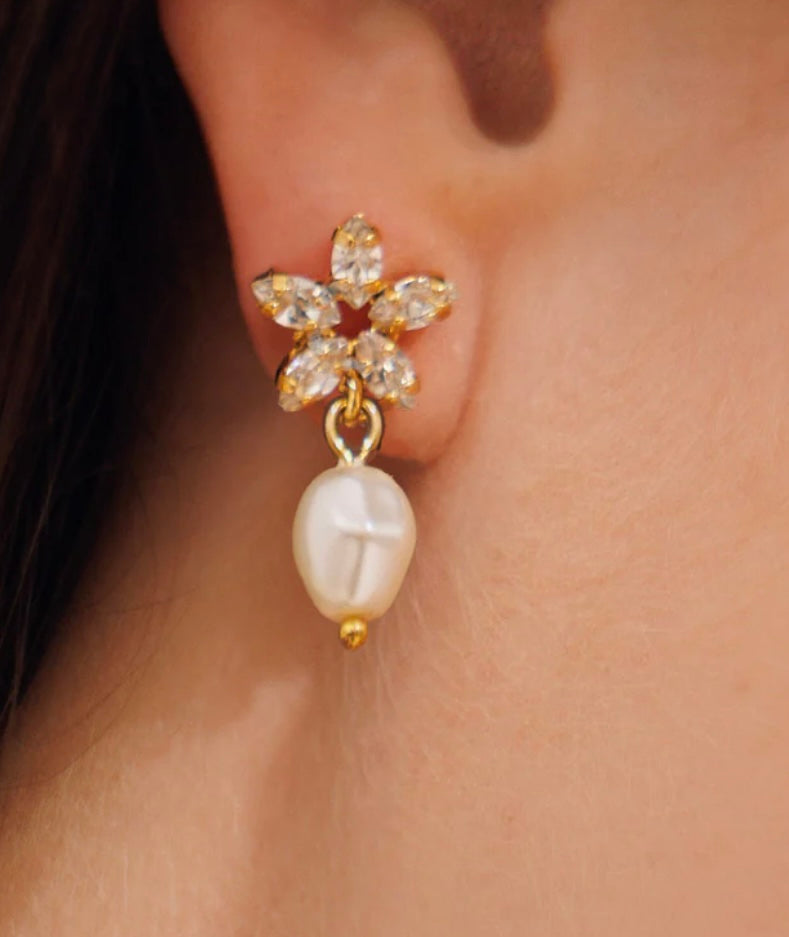 Upptäck Emmy Earrings där elegans möter modern sofistikering. Dessa örhängen har en tidlös design med en hängande pärla som tillför en touch av glamour till varje look. Ett måste i din smyckesgarderob!