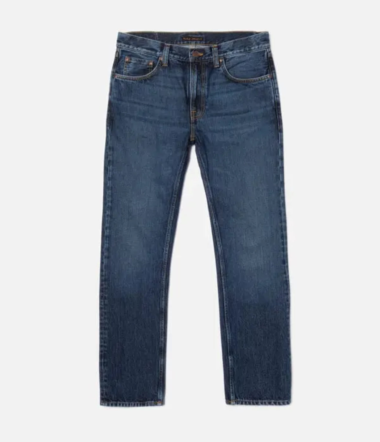 Regular fit jeans with a straight leg in a dark blue wash with subtle wear. Made from organic cotton.