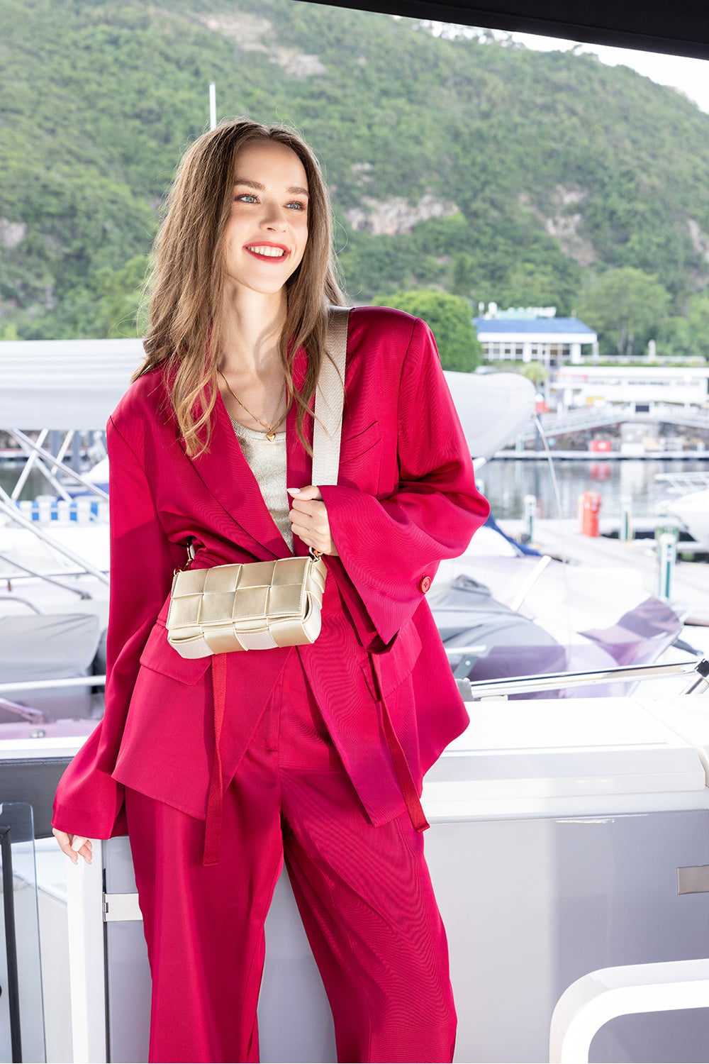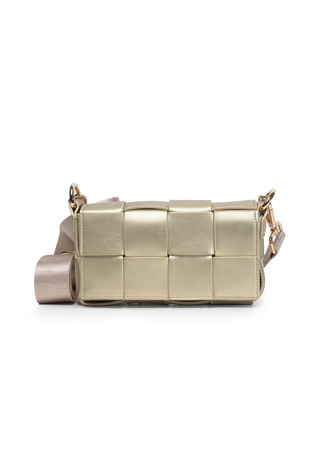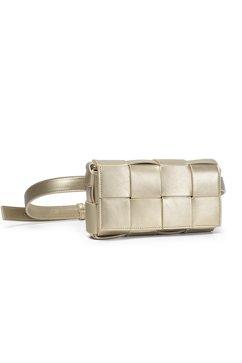 An elegant, smaller braided shoulder bag that closes with hidden magnets. Three detachable shoulder straps are included, an adjustable wider strap in nylon. Two narrower in the same material as the bag, where one is used as a shoulder strap and the other one as a waist bag.