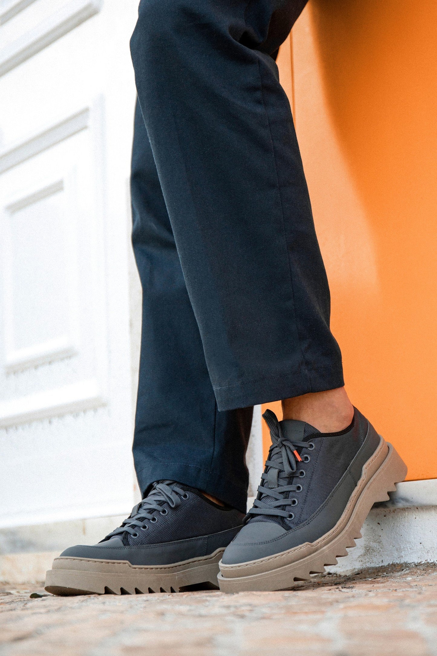 Kamiki Low är en grov, låg sneaker/boot-hybrid. Tillverkad i en kombination av robust, vävd nylon och läder med ett foder i ekologisk bomull. Gjord på en lätt men slitstark TPR-sula.