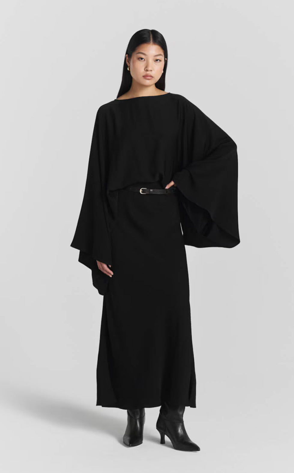 Vi presenterar Klasia-blusen, ett lyxigt tillskott till din garderob. Tillverkad av halvblank satin med lös passform och vida ärmar, prydd med nyckelhål och knäppning i nacken.