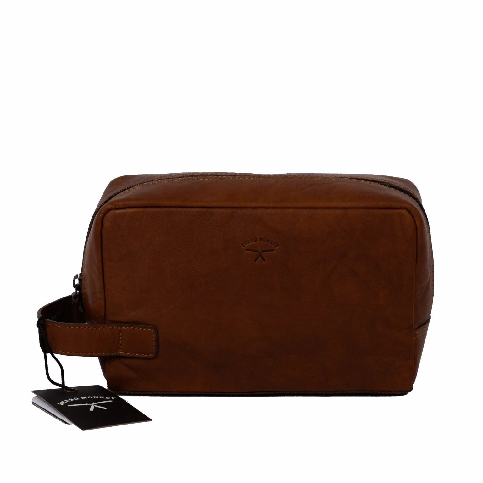 En exklusiv necessär tillverkad i handgjort, vegetabiliskt behandlat läder med ett subtilt, nedpräglat Beard Monkey-tryck på framsidan. Lädrets naturliga märken och färgvariationer gör varje produkt unik, samtidigt som den åldras vackert över tid.