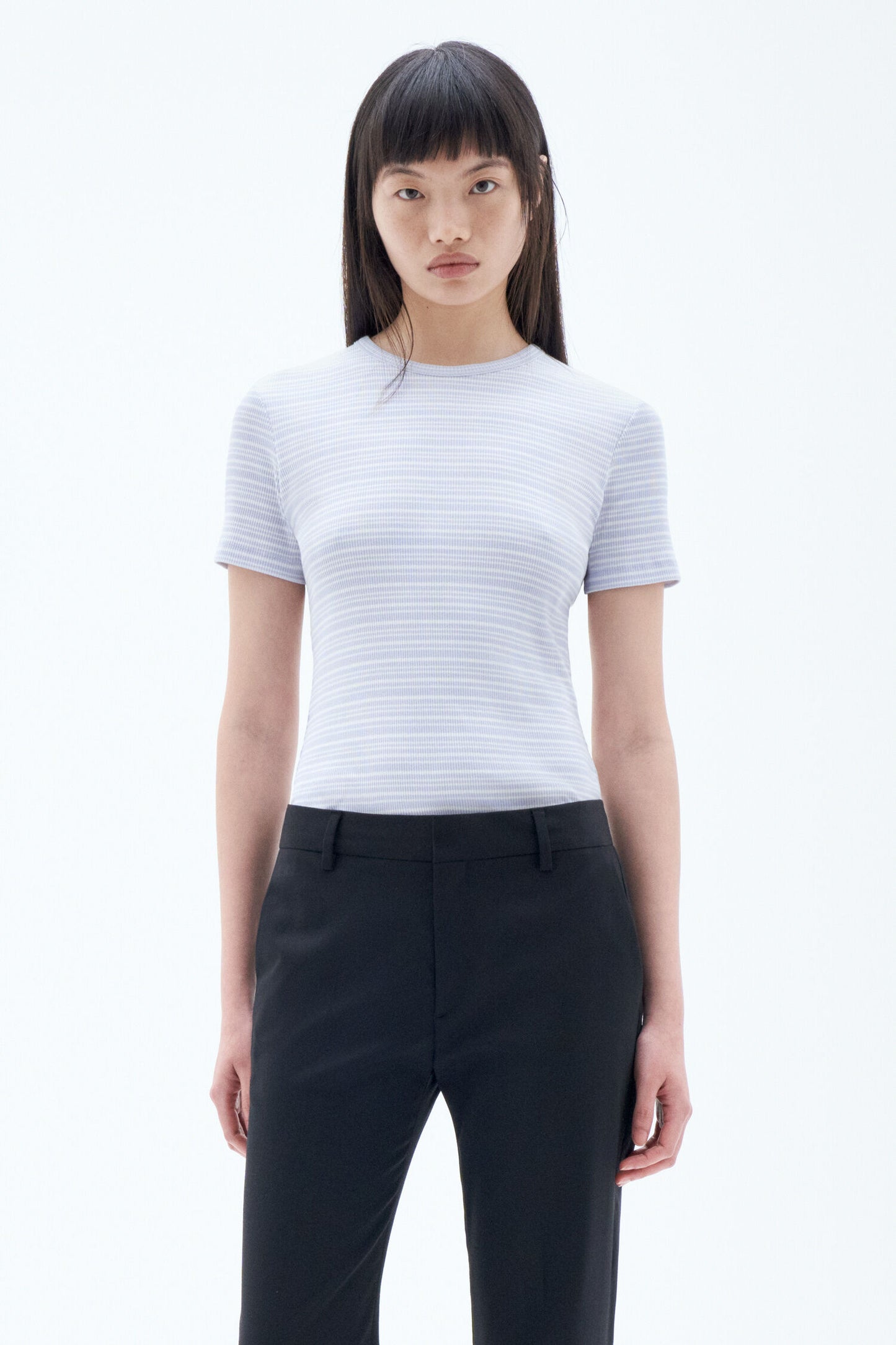 The Striped Tee has a slim fit in blue and white striped organic cotton. The casual style is inspired by the Filippa K 90s archives, and pairs perfectly with denim or tailored trousers.
