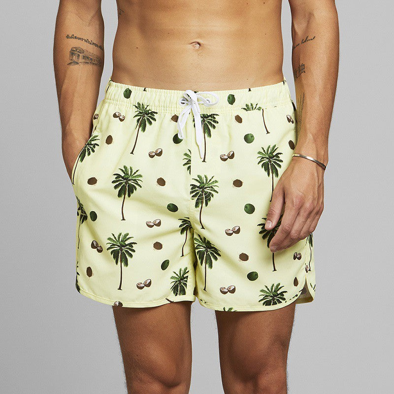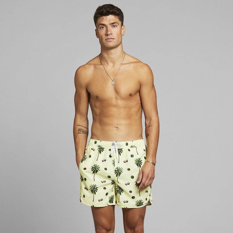 Medium length swim shorts made from recycled PET bottles. Mesh lining and two side pockets, a back pocket with velcro closure and drawstrings at waist.