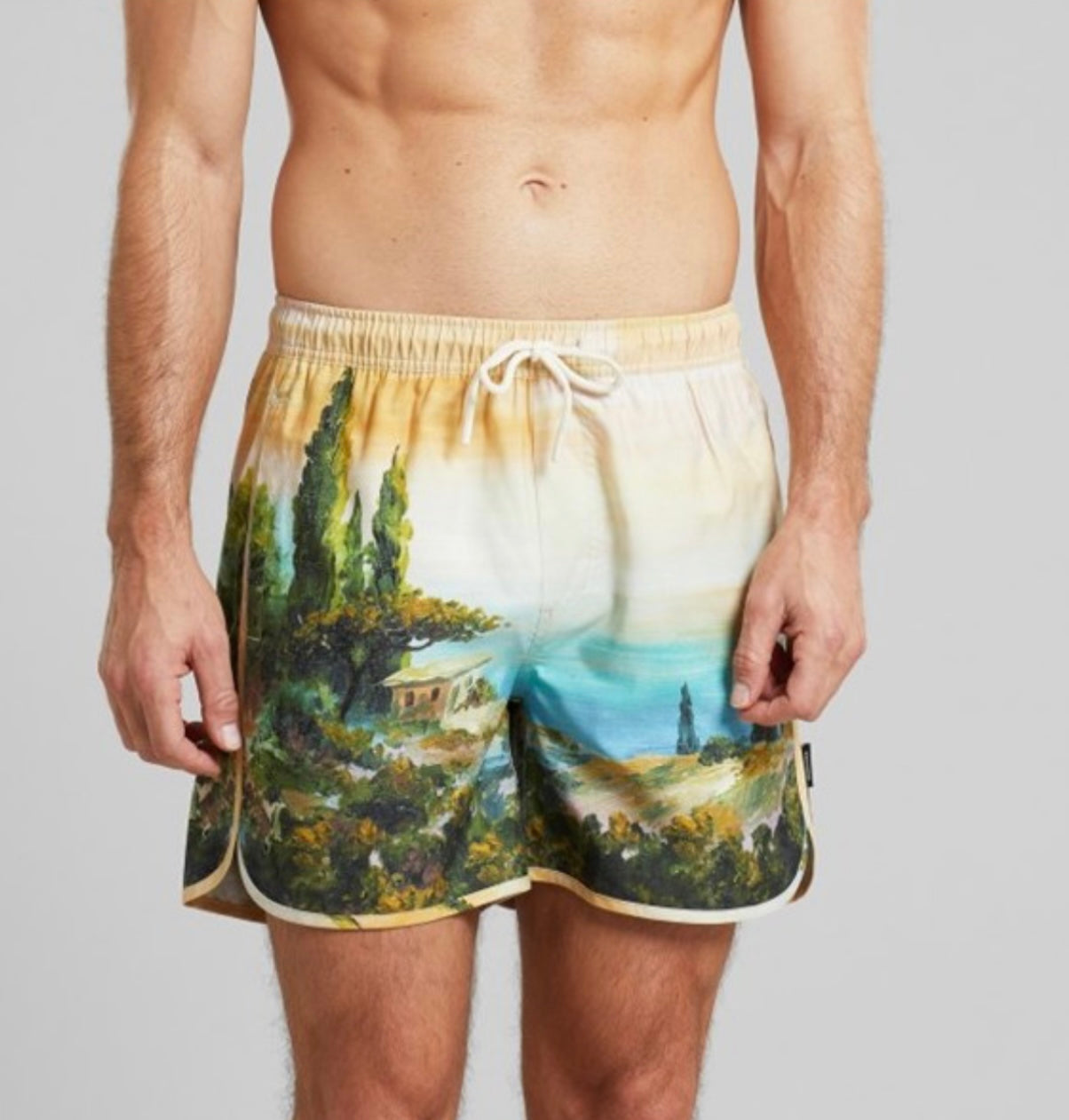 Medium length swim shorts made from recycled PET bottles. Mesh lining and two side pockets, a back pocket with velcro closure and drawstrings at waist.