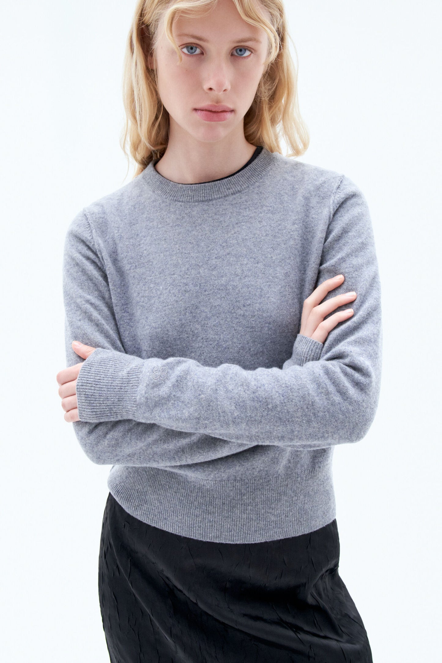 Lambswool sweater with 90s-inspired inside-out seam detailing, and the Filippa K 93 Monogram in tonal embroidery at the sleeve. Part of the 1993 Capsule Collection: a celebration of 30 years in fashion.