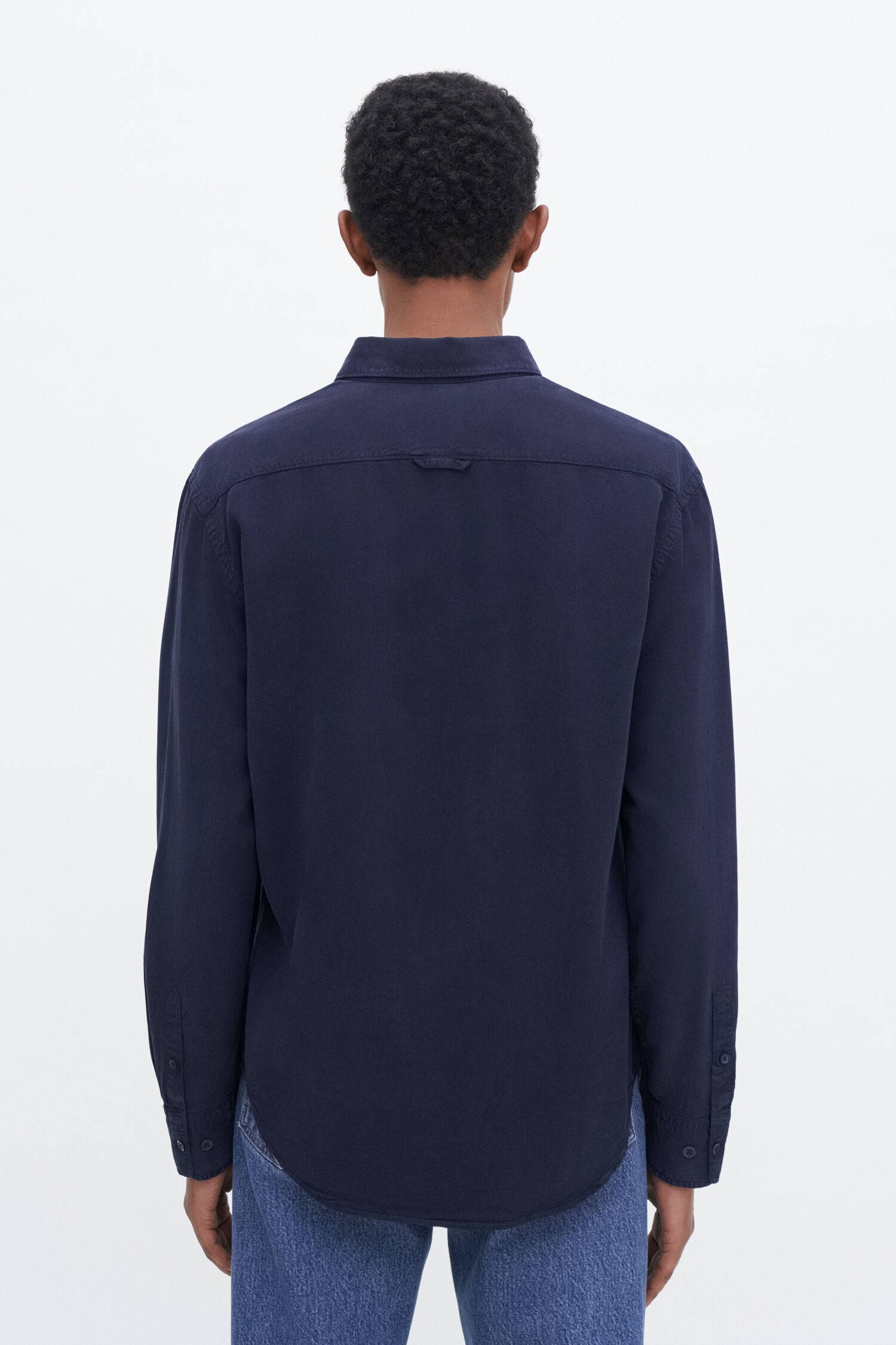 Zachary Shirt har en avslappnad passform i marinblå TENCEL™-lyocell, en mjuk fiber från Lenzing som skapats från trämassa. Den har synliga sömmar och en påsydd ficka med knapp. Kombinera den med skräddarsydda byxor eller avslappnat med denim. Det här plagget är en del av vår Core Collection: permanenta stilar designade med de väsentliga delarna av en basgarderob i åtanke.